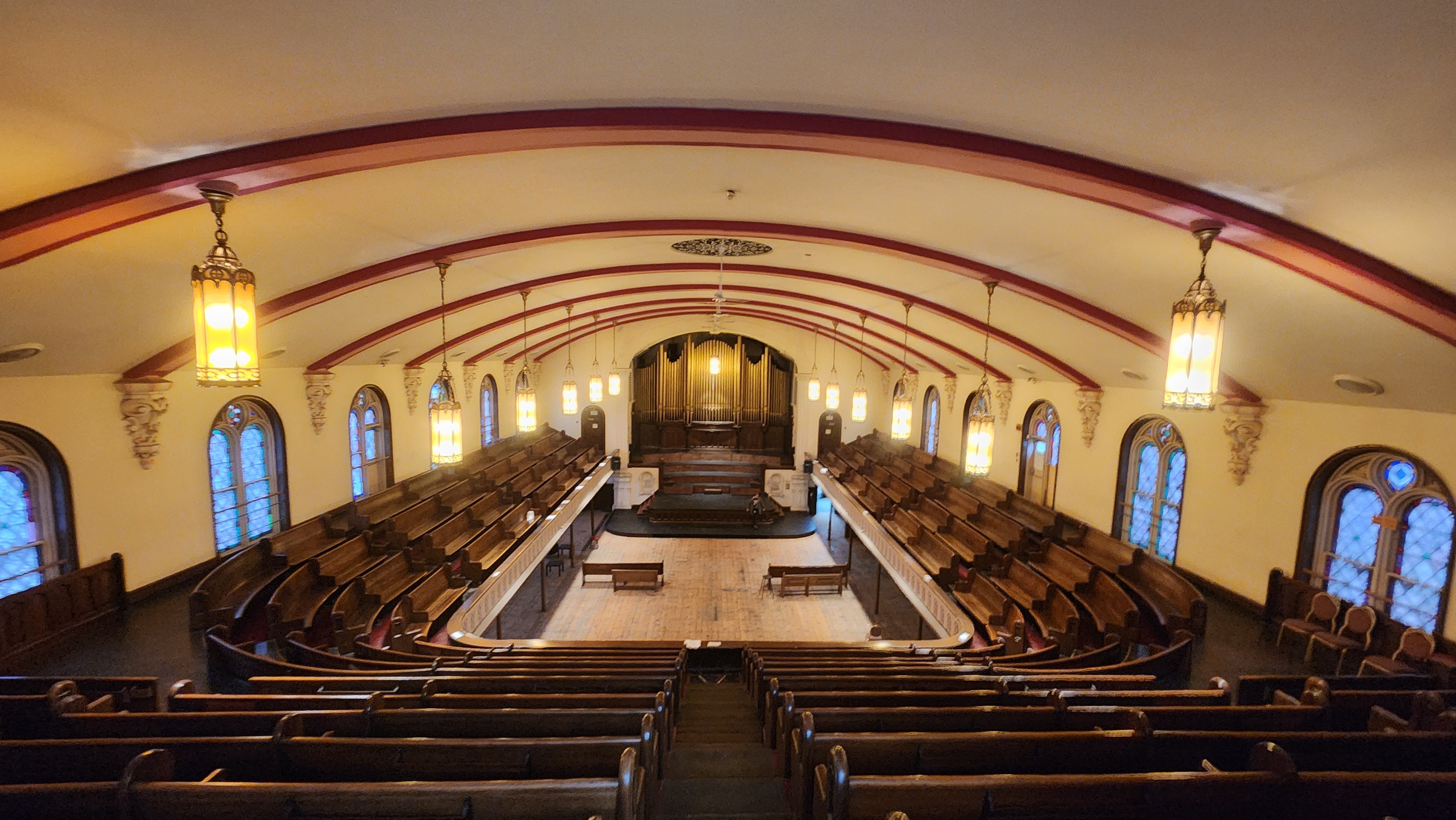 The Music Hall was originally built as Centenary Methodist Church in 1868. Designed by architect Albert Harvey Hills, the building is a stunning example of Victorian-romanesque Now the New Vision United Church (The Music Hall) is a designated building in the City of Hamilton. It boasts soaring ceilings, glorious acoustics, a wrap-around mezzanine and massive stained-glass windows. It is a sight to behold!