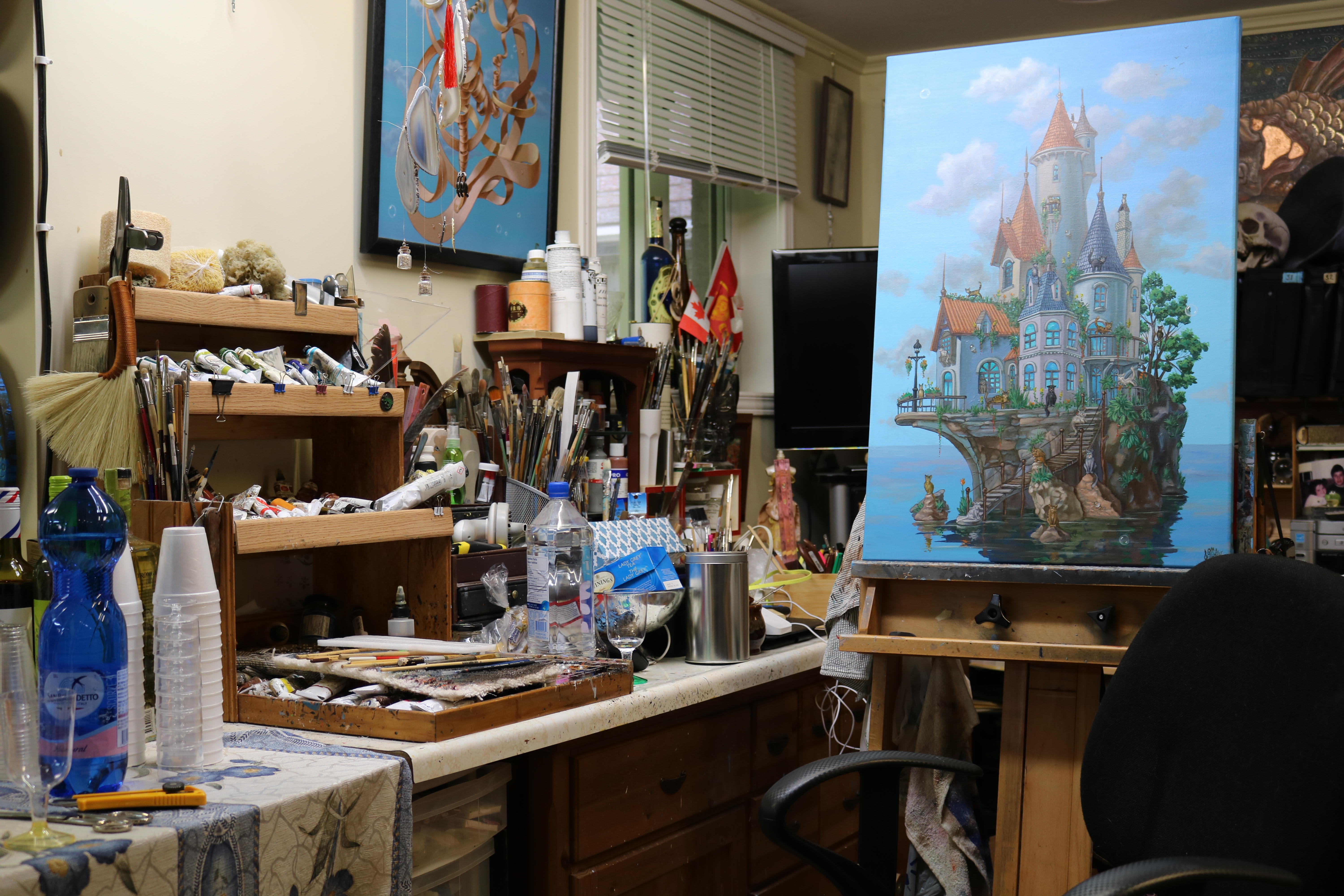 This home studio showcases the works of Victor Molev, a contemporary painter working primarily in oil on canvas, known for his distinctive blend of surrealism and symbolic realism. His work draws on classical painting traditions while exploring dreamlike, psychological, and allegorical themes. Through carefully constructed compositions, muted palettes, and refined textures, Molev creates timeless images that evoke mystery and introspection.
