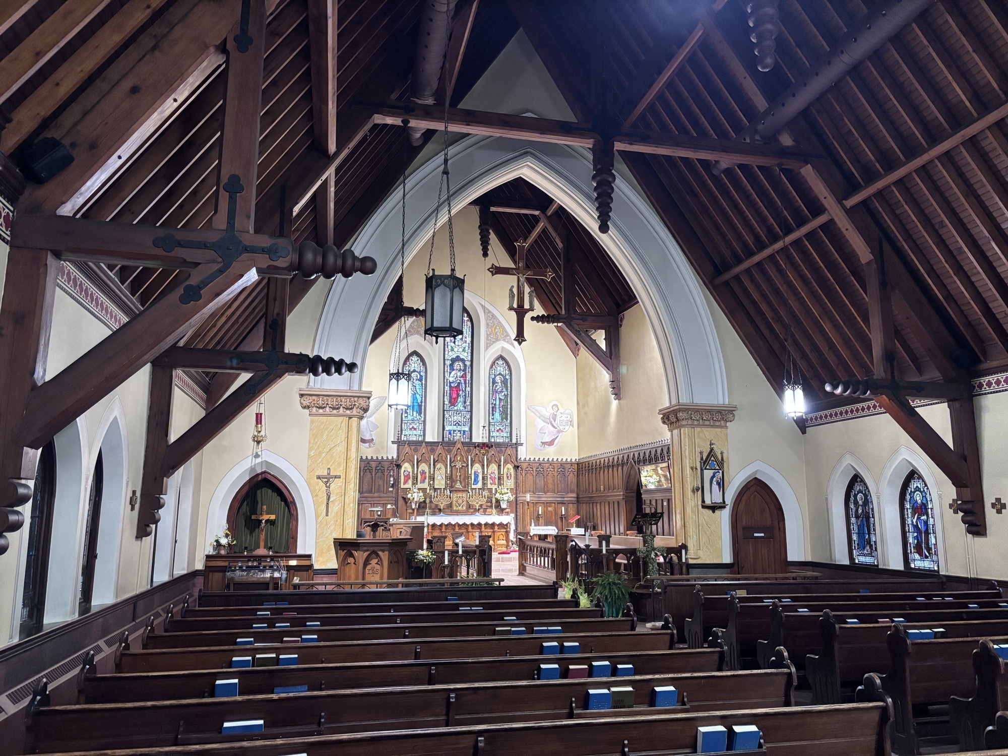 Designed by Toronto architect Charles T. Gibson, the foundation stone of the Church was laid in 1893. The church features local red-brown sandstone, a slate roof, solid wooden beams with turned drop finials, intricately carved paneling and stained-glass windows dedicated to local citizens. The collection of vestments and candelabra will also be on display. Live music will play throughout the day!
